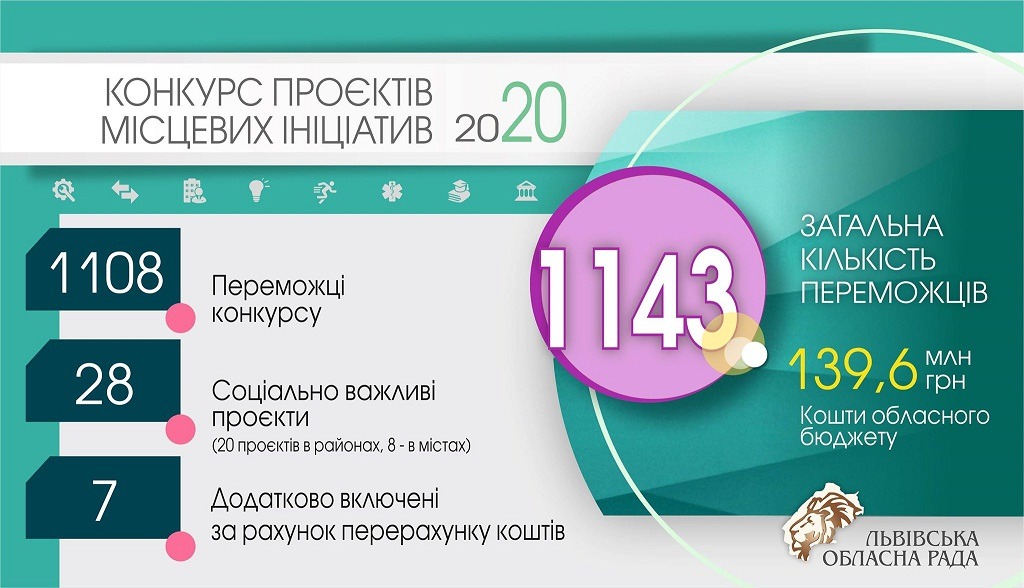 Як доповів секретаріат Конкурсної ради, 1108 із 1111 потенційних переможців Конкурсу проєктів місцевих ініціатив у Львівській області надали рішення про бюджетне співфінансування як в частині забезпечення сільських, селищних, міських, ОТГ бюджетів, так і з районних рад. Отож, 1108 потенційних переможців за рішенням Конкурсної ради стали переможцями. Крім того, Конкурсна рада затвердила пропозиції по соціально важливих проєктах у розрізі адмінтеродиниць (міста обласного значення і райони) по одному проєкту на територію, загалом 28 соціально важливих проєктів