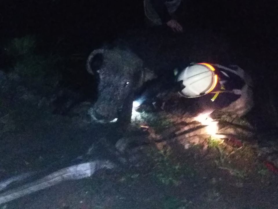 Тварина була знесилена. Від власників корови, які були на місці події, надійшла інформаціїя про те, що вона вагітна, то ж рятувальниками доводилось максимально обережно проводити операцію з вивільнення тварини. Пожежно-рятувальним відділенням та місцевим населенням за допомогою пожежних рукавів та автомобільної лебідки корову витягнуто на поверхню та передано власнику.