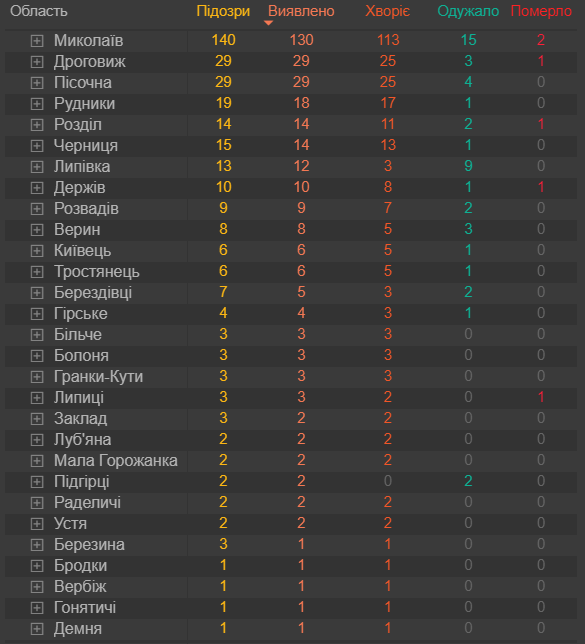 На території Миколаївського району станом на 21.07.2020р. зареєстровано всього 331 випадок захворювання на COVID-19.