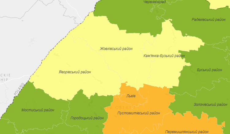 Окрім Жовківщини до жовтої зони серед районів Львівщини потрапили: Яворівський та Кам’янка-Бузький райони.