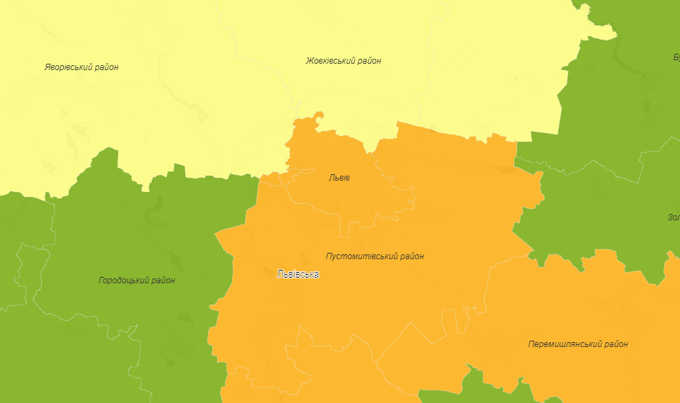 Окрім Львова, до помаранчевої зони на Львівщині потрапили: Пустомитівський, Миколаївський і Перемишлянський райони.