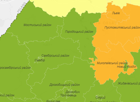 Згідно інтерактивної карти Мостиський район віднесли до зеленої карантинної зони.