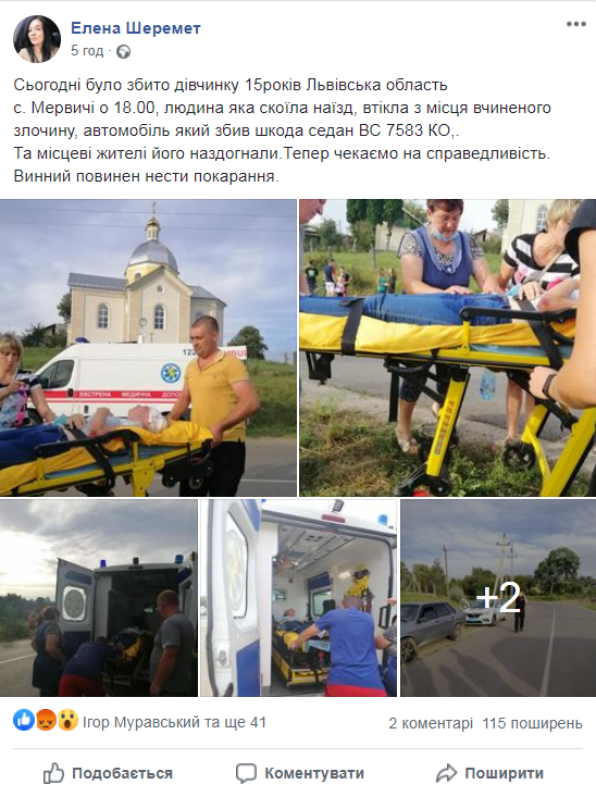 “Сьогодні було збито дівчинку 15років Львівська область