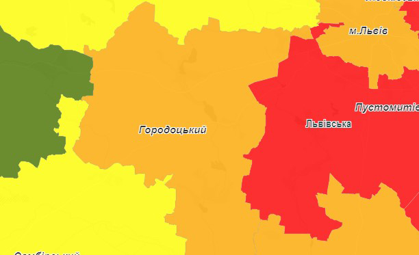 Городоцький район було віднесено до “помаранчевого” рівня епідеміологічної небезпеки.