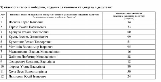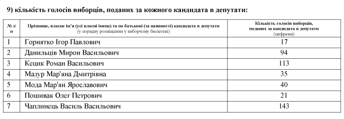 – Матійців Володимир Ігорович (Самовисування) – 95 голосів