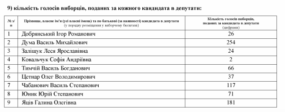 – Дума Василь Михайлович (Самовисування) – 254 голоси
