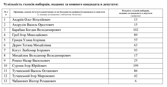 – Сурмик Ігор Юрійович (Самовисування) – 199 голосів