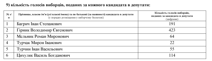 – Багрич Іван Степанович (Самовисування) – 191 голос