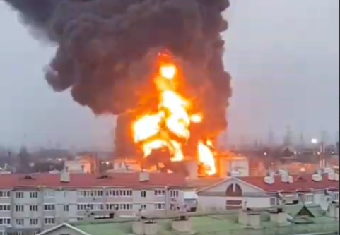 У російському Бєлгороді спалахнула пожежа на нафтобазі.